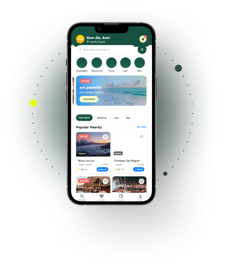 Descubra, explore e conecte-se com facilidade a experiências turísticas autênticas, seguras e repletas de alma africana.